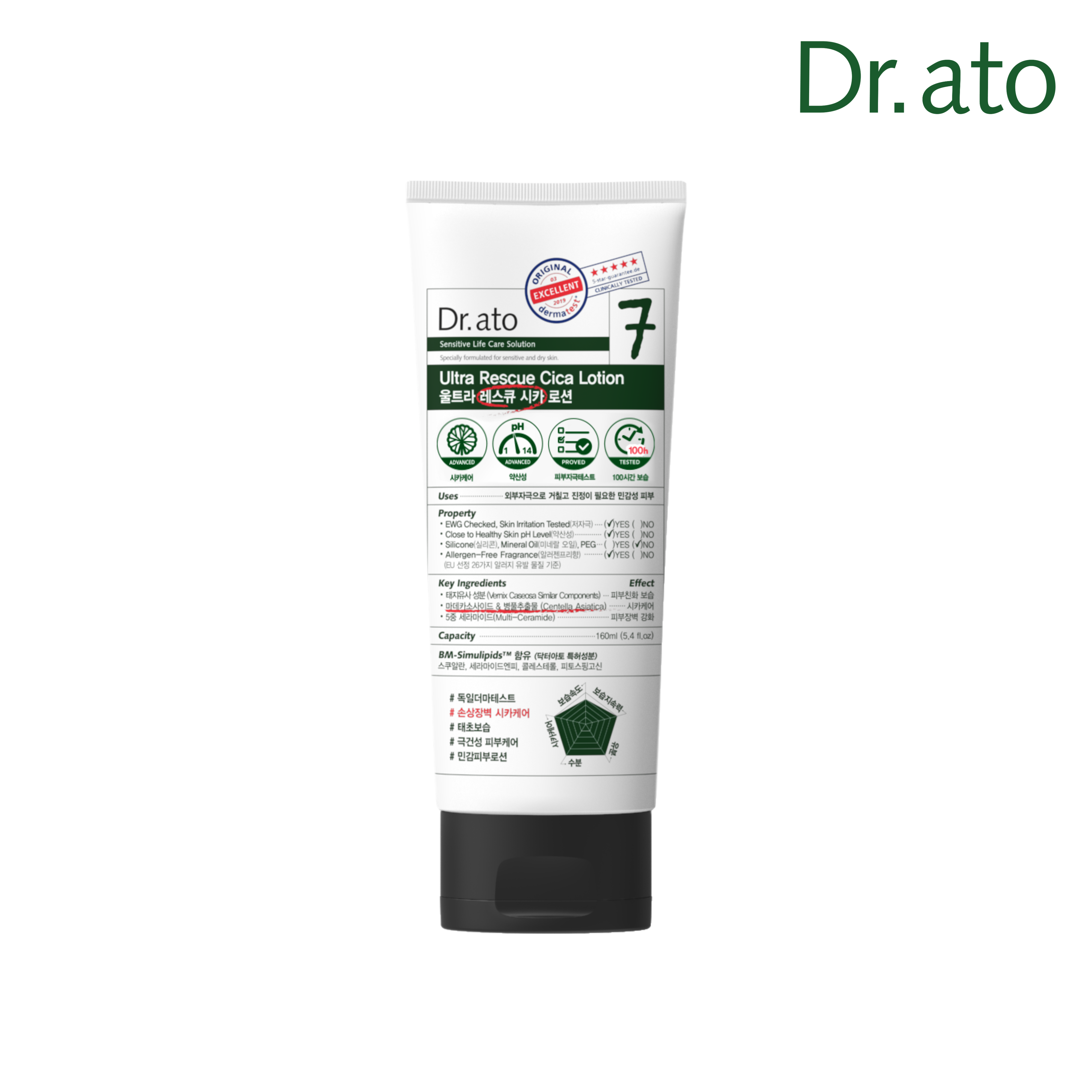 – Thành phần giống Vernix-caseosa, BM-Simulipids:Vernix caseosa là một lớp màng trắng bảo vệ làn da của em bé khỏi nước ối. Dựa vào đó, Dr.ato đã tiến hành nghiên cứu về da trong hơn 40 năm và phát triển một chất tương tự như “vernix caseosa” có tên BM Simulipid bao gồm ceramide, cholesterol và squalane giúp duy trì độ ẩm cho da mà không gây kích ứng đồng thời bảo vệ làn da nhạy cảm, mềm mại.